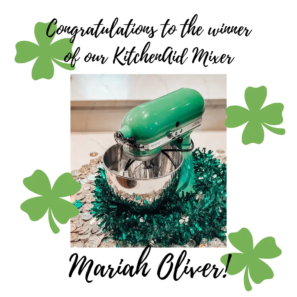 Congratulations to the winner of our KitchenAid Mixer giveaway…Mariah Oliver! Please message us on Facebook or Instagram for information on how to claim your prize. And thank you to everyone